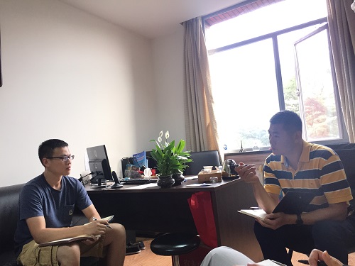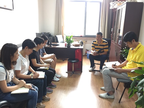 首先,苍海书记听取各支部工作汇报。各支部书记从支部建设、工作经验和不足、支部工作面临的主要问题等方面进行了汇报。15级博士党支部书记周嘉琳表示,该支部党员能够按时学习党章,自学党的相关文件,定时汇报学习心得,查找不足。同时,各支部党员能够发挥各自特长,在日常学习生活中做到优势互补。16级博士党支部书记李上校表示,针对部分党员出国学习的实际情况,支部通过定期网络视频学习,交流心得体会,取得了良好效果。两位支部书记也同时提到了博士支部党员人数较少、作息时间相对分散,支部集体活动不易开展的现实问题,针对这一情况,苍书记提出今后将博士党员根据所属专业方向编入相应教研室党支部的建议,很好地解决了这一问题。