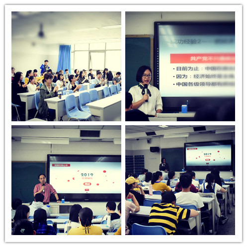 在教学楼301教室举行专题党课,2018级1班班主任王荣辉和2018级2班班主任雷厉分别讲党课,全体同学参加。