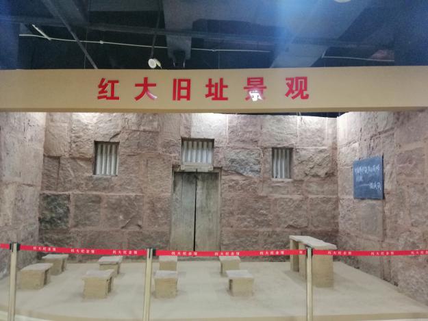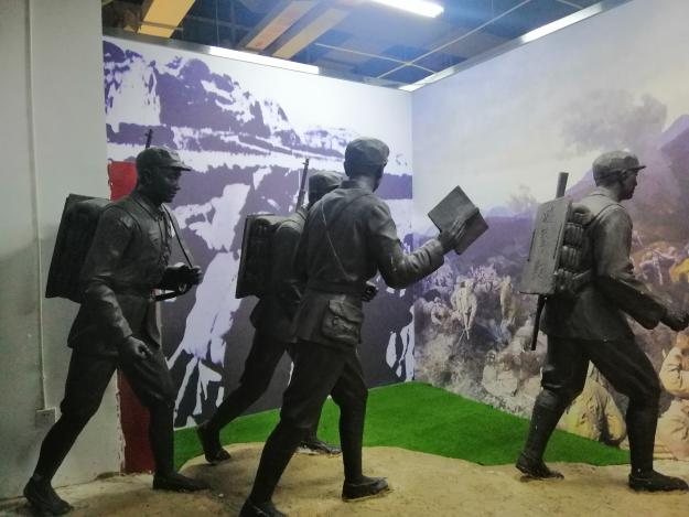 抗大学生背行军教学板的场景复原 红大旧址景观