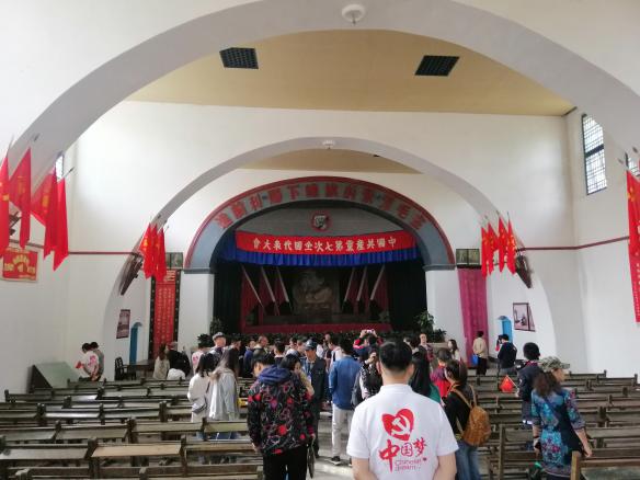 培训班首先参观中央大礼堂——七大会场旧址。1945年4月23日至6月21日在中央大礼堂隆重召开了中国共产党第七次全国代表大会,出席大会的正式代表547人,候补代表208人,代表全国121万党员。“七大”选举毛泽东、刘少奇、周恩来、朱德、任弼时为中央书记处书记,毛泽东为中央委员会主席、中央政治局主席、中央书记处主席。从此,确立了毛泽东在中国共产党的领导地位。