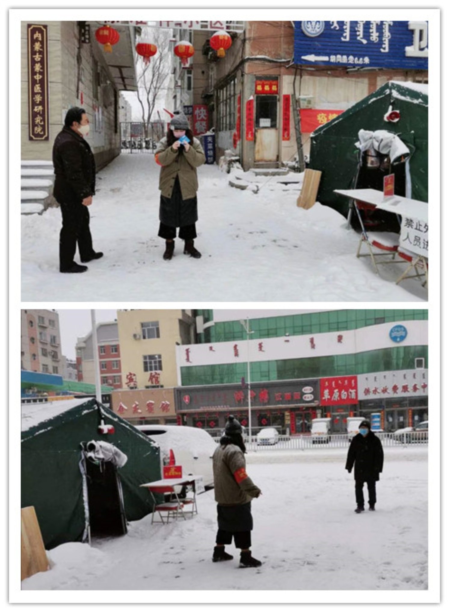 内蒙古的田书萌同学,是体质与健康教研室19级硕士研究生。她在社区居委会分配的检查点工作,主要负责检查进出人员通行证并测量体温。当地近期一直在下大雪,气温零下十几度。可她不觉枯燥,不惧严寒,反而内心无比火热。她说:“我有义务也有能力去保护我的家乡,面对疫情,保护自己是一种本能,但保卫家乡和祖国,是每个人肩头的责任!虽不能奔赴一线,但我也要为抗疫作出贡献。我愿在基层一线辛苦工作,时刻为人民服务。”