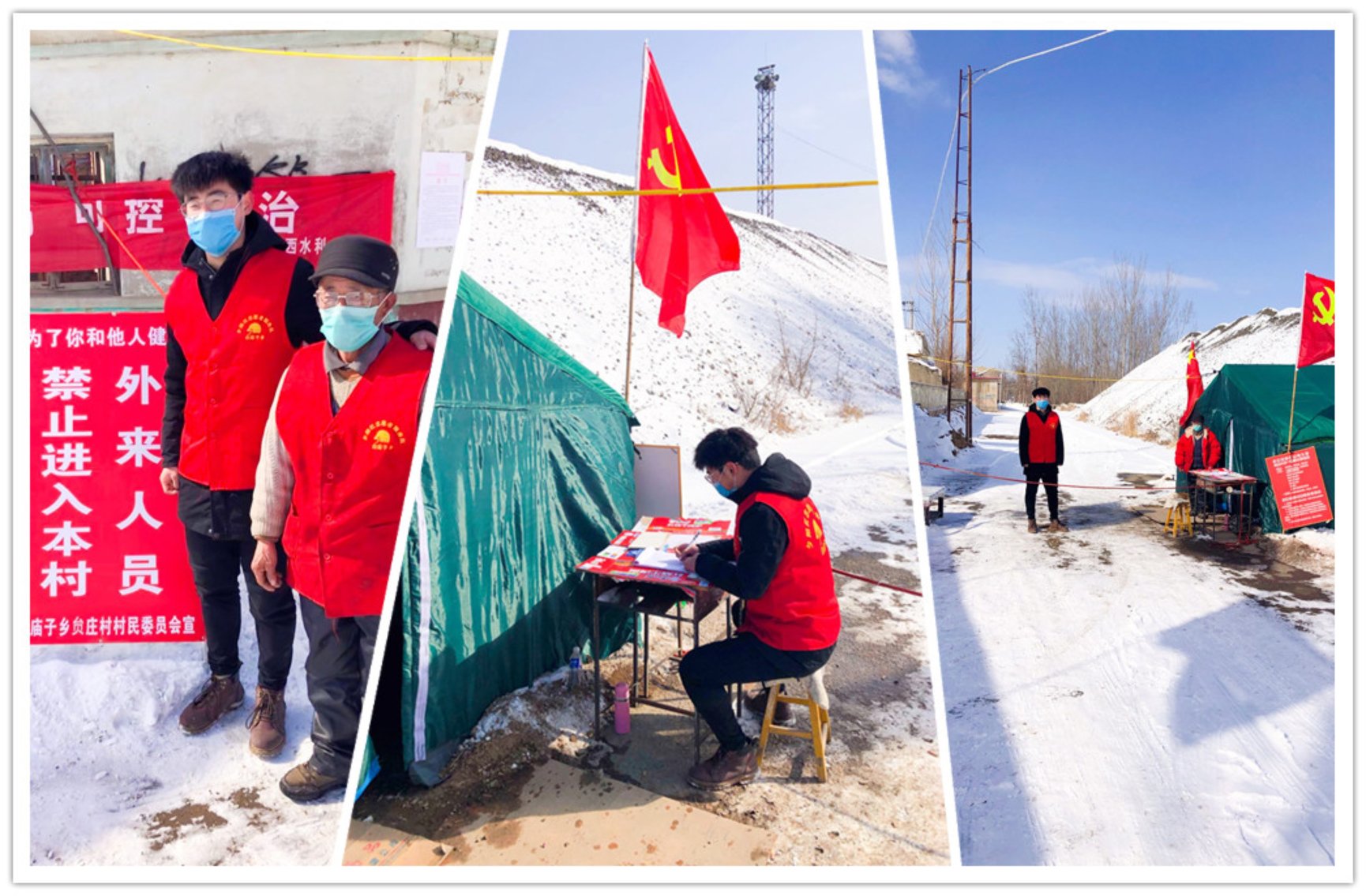 河北唐山的贠贺章同学,是运动生理学教研室19级硕士研究生。自大年初二参与村中疫情防控工作开始,已经连续20多天了。他主要负责村口守卫及测量进出村庄人员体温等工作。村口守卫点刚开始并没有帐篷,只有一张简易的桌椅,他在冰天雪地里一站就是一天。温度最低的时候能达到零下十多度,手脚冻僵了就在周围跑跑步。问到贠贺章同学为什么选择这样做的时候,他说:“我虽不能像医护人员那样,奋战在抗击疫情第一线,但也要尽己所能为抗击疫情出一份力量。虽不是一名党员,但也要以党员的标准严格要求自己,做到为人民、为大家服务。”