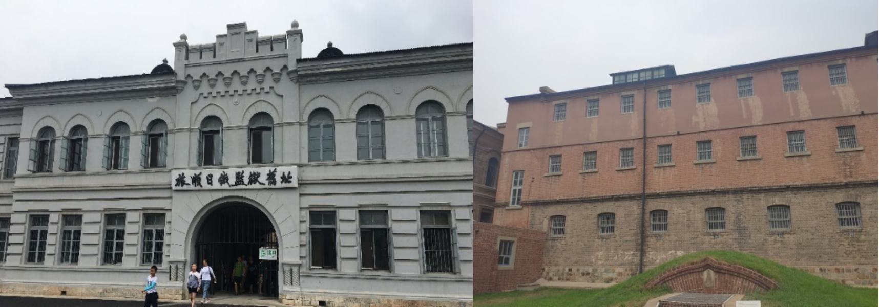 监狱主体建筑、监房和外墙的颜色很清楚地反映了俄、日两国相继建牢的历史,下部青砖是沙俄盖的,上部红砖是日本人加建的。整个监狱的牢房布局,呈“大”字形,设计精巧。从“大”字一横之端走进去是一条走廊。走在走廊上,抬头即可看到二楼,二楼走廊中间铺的是铁条,便于二楼的监守人员同时监看一楼的情形。“大”字中间汇聚之处可以同时看到三条走廊的牢房,设计巧妙,对于监狱看管人员的监管工作可以省时省力;然而讽刺的是这样精妙的设计却是在一个非正义的侵略方建立的,用来侵略和压迫为正义而战的中国志士。