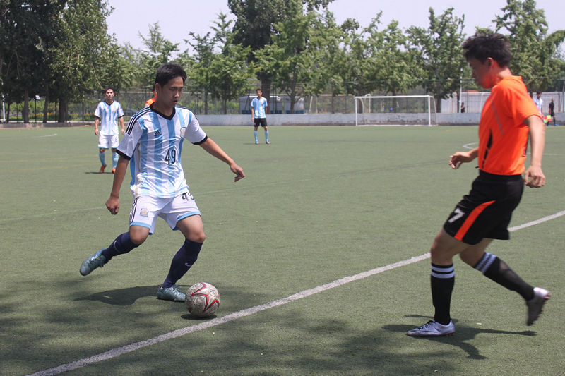 先下一城。管院失球后加强攻势,先后在第26分钟和31分钟造成威胁,但Evi的飞身扑救和抱球入怀接连终结了对手的进攻。第34分钟管院终于打出漂亮配合攻入一球扳平比分,双方以1:1平结束了上半场。