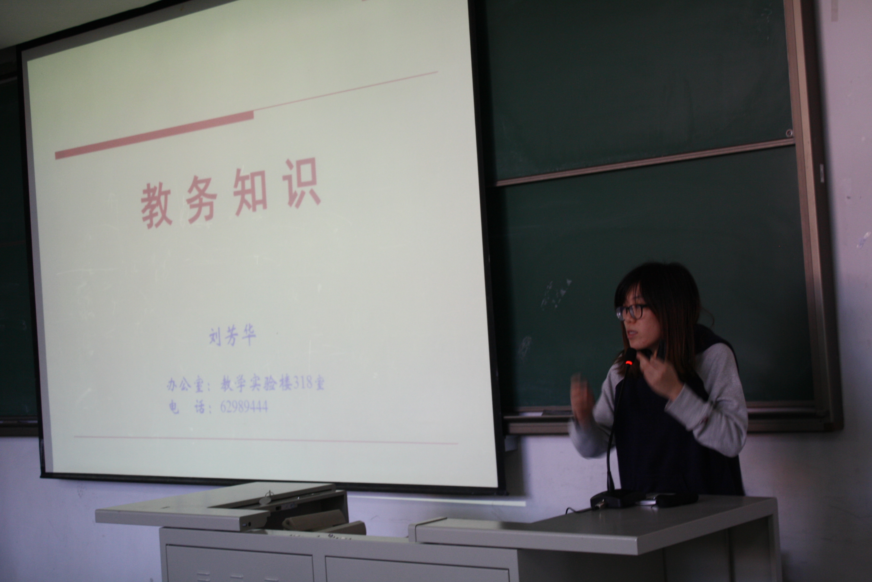 首先,刘老师对运动人体科学和应用心理学两个专业的教学培养方案进行了详细解读,让同学明确修够多少学分才能正常毕业。并就同学关心的一些教务知识,如入学与注册、选课、学分管理、课程考核与成绩记录、缓补考、学业预警等做了介绍。