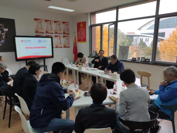 开展博士研究生培养质量提升专题调研。院长王荣辉、分党委书记雷厉、副院长于亮以及博士生导师刘晔、石丽君、曲峰、曹建民、任弘和部分博士生代表参加了座谈。
