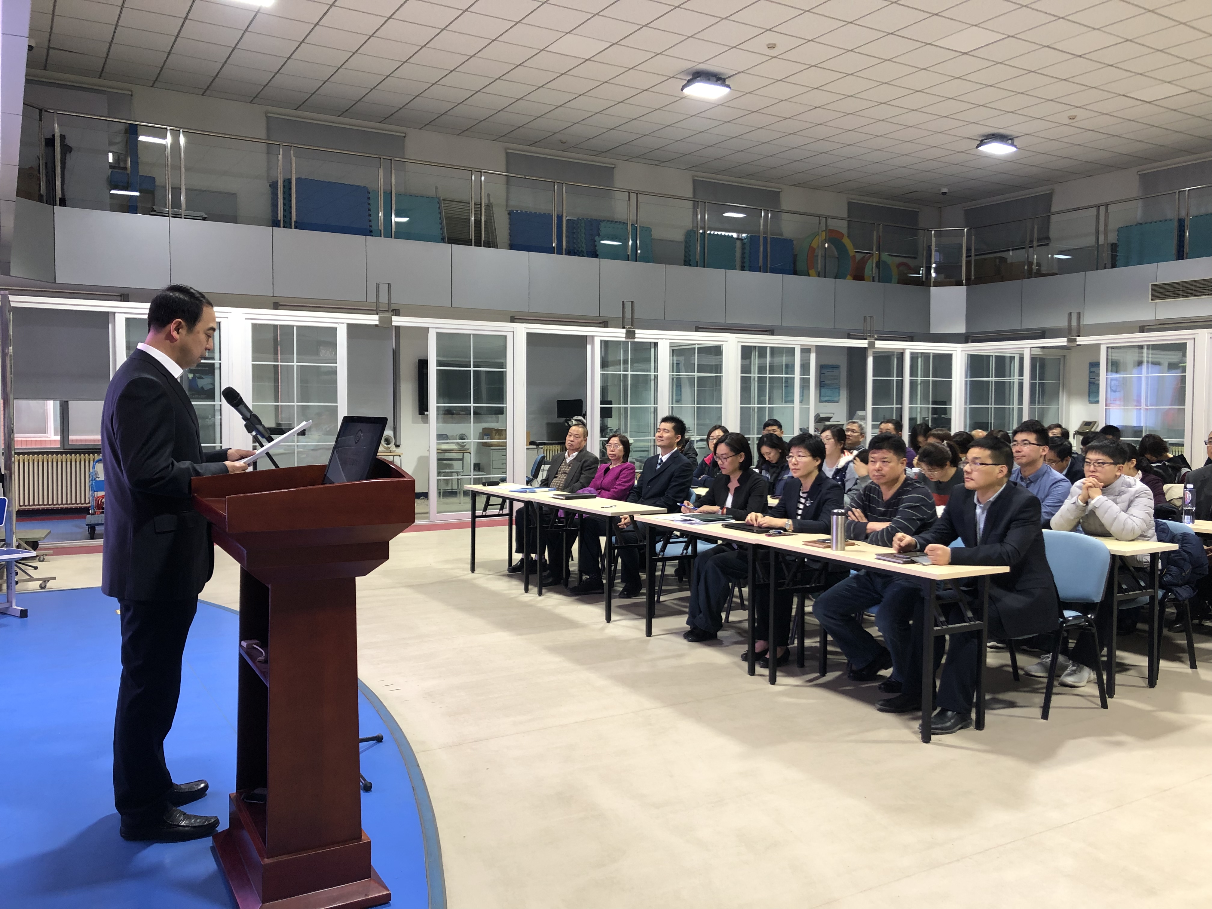 2018年党政班子述职大会于1月9日下午16:00在教学实验楼322会议室召开。参加本次大会的有巨乳a片党政领导班子、巨乳a片全体教职工共计40余人,会议由院长王荣辉主持。