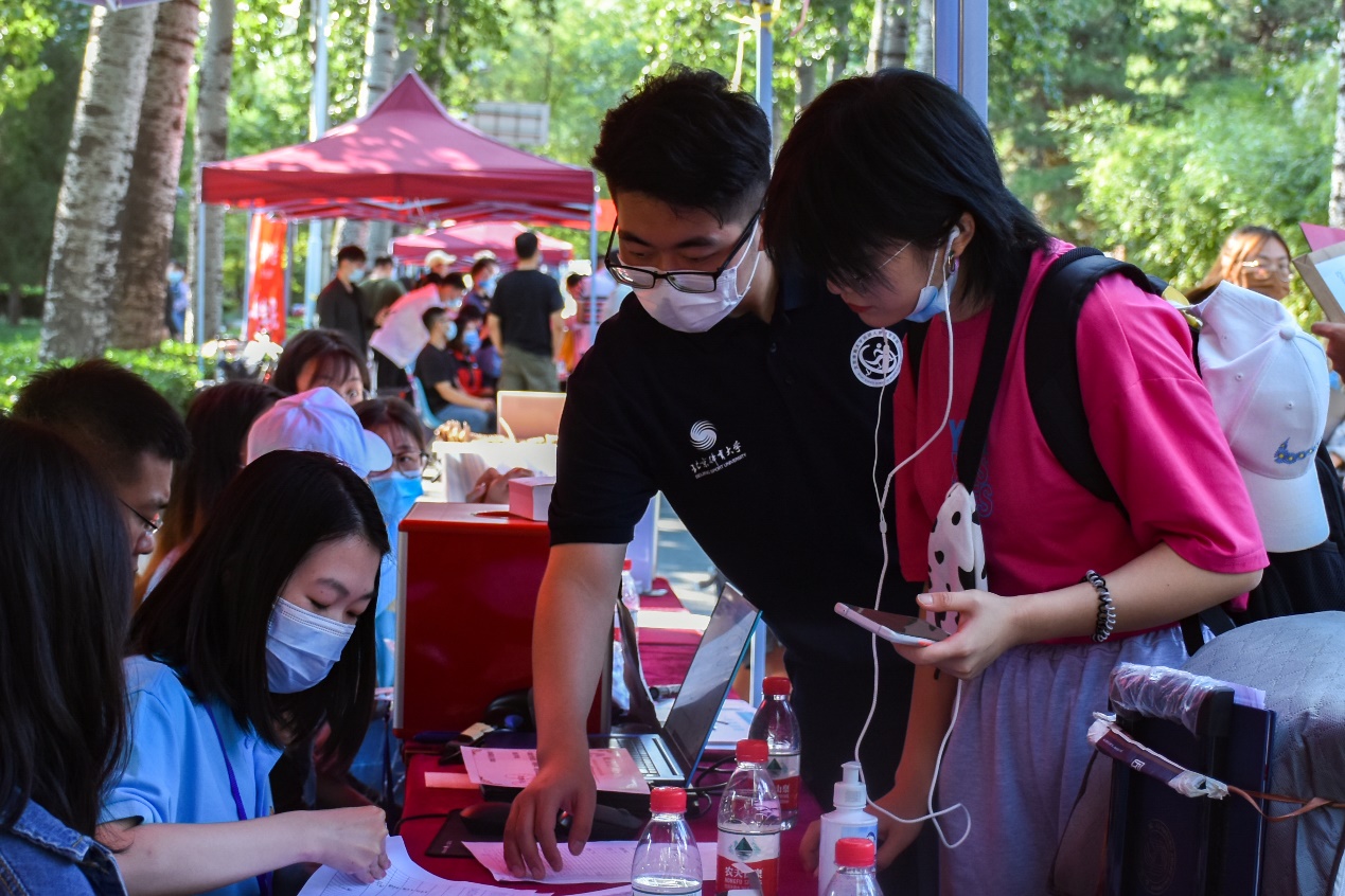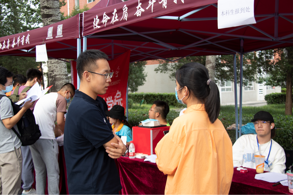 巨乳a片领导全天都到迎新现场看望新生和志愿者同学们,辅导员娄立天和刘鸿瑞一直坚守迎新一线,为新同学答疑解惑。
