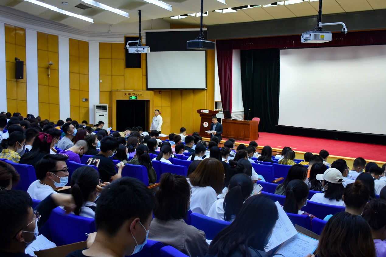 晚上19:00,团总支书记娄立天,辅导员刘鸿瑞,助理辅导员张鹏程、刘殷玉典、汪澳哲在师统讲堂主持召开了新生们的学前教育会。