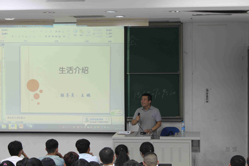 在在教学楼215教室,召开了2015级本科新生见面会。会议由2014、2015级辅导员王鹏老师主讲。