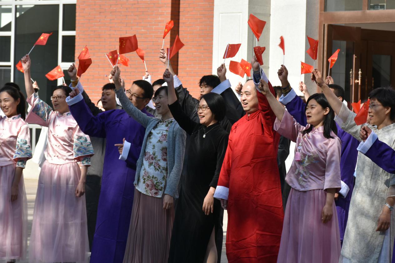 此次快闪活动,巨乳a片师生积极响应,院长王荣辉、分党委书记雷厉、教育部双带头人教师支部书记石丽君等也参加活动,担任领唱或领衔合唱,活动现场热情高涨、反响强烈,不断有同学驻足观看。两首脍炙人口的经典曲目《唱支山歌给党听》、《没有共产党就没有新中国》更是引起现场观众齐声合唱。