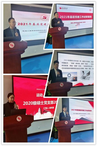 会上,运动解剖、运动生理、运动生物化学、运动生物力学、体质与健康教研室党支部,以及本科学生第一党支部、第二党支部,2019级、2020级、2021级硕士研究生党支部等十位党支部书记依次述职,他们分别从履职情况、主要做法、存在问题及下一步改进方向等方面展开述职,全面梳理和总结过去一年支部党建工作开展情况。