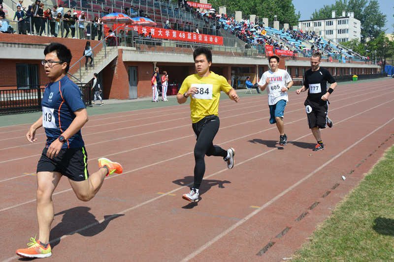 597号选手孟园后程发力,最后一圈力挽狂澜,以6分17秒23获得第三名的好成绩,598号选手邓葳紧随其后跑出了6分19秒01的成绩获得第四名。男子1500米比赛中,583号王帅一路遥遥领先,获得冠军,并以4分37秒08的惊人成绩打破了男子丙组1500米的记录。同组584号李君天跑出了4分56秒52的成绩获得第五。烈日炎炎,巨乳a片