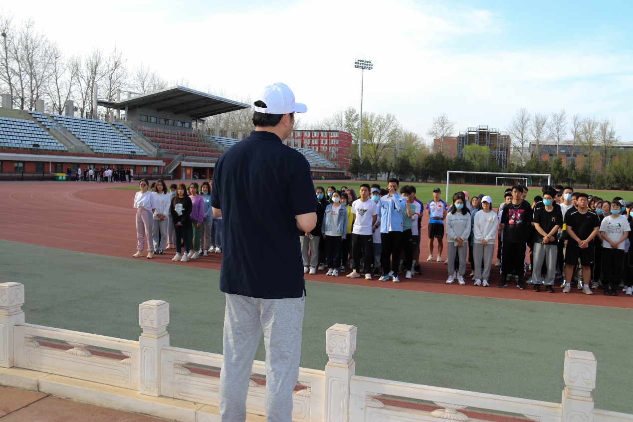 于英东田径场举办了2021年春季学期“百公里”跑步计划启动仪式,本次活动由本科生辅导员娄立天主持,分党委书记雷厉、院长王荣辉、院长助理赵星、周财亮、研究生辅导员刘鸿瑞、院办吴晓薇、杨丹、高超、安娜、蒙奕含老师,以及2020级全体同学共同参加了本次活动。