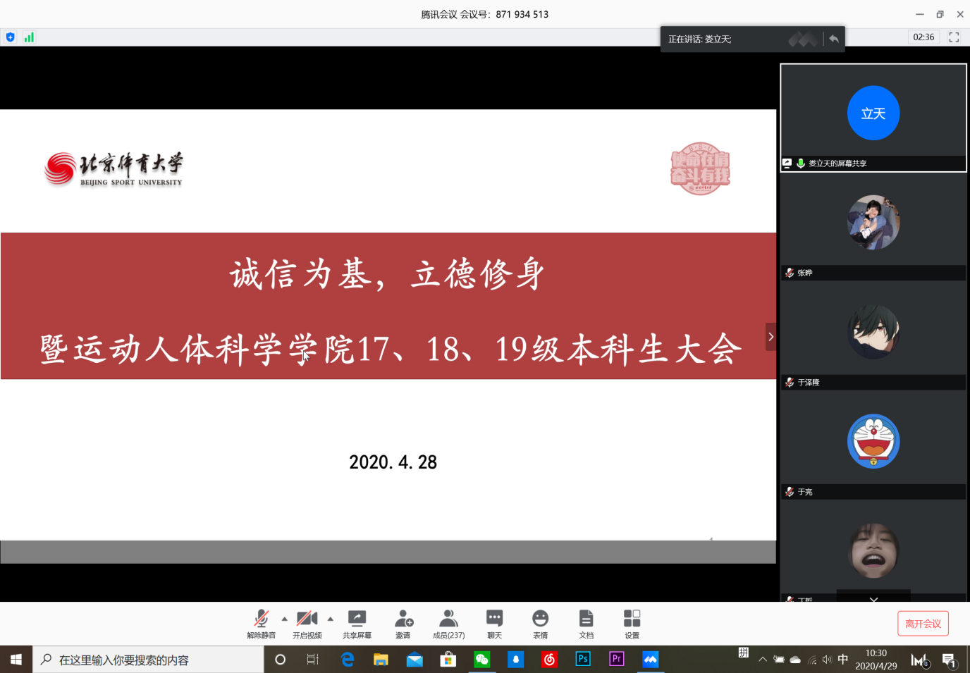 4月29日上午10:30召开2017-2019全体本科生在线会议,由辅导员娄立天主持;4月29日下午13:00召开2018-2019级研究生在线会议,由辅导员刘鸿瑞主持;4月29日晚上19:00召开全体本科及研究生毕业生会议,由辅导员刘鸿瑞主持;4月30日中午12:30召开巨乳a片全体教师大会,由院长助理赵星主持。分党委书记雷厉、院长王荣辉、副院长于亮均全程参与以上会议并发言。
