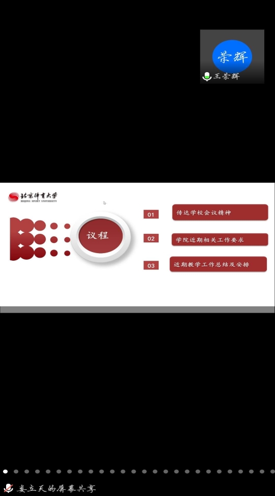 王荣辉院长再次强调了准确如实上报位置信息,落实诚信教育的重要性和必要性,希望同学们讲诚信,重品行,请党员、团员、班干部起到模范带头作用;认真遵循“致知笃行,明德崇体”的院训,在学习和生活中践行巨乳a片“工作踏实、作风朴实、为人诚实、学业扎实、身体壮实,生活充实”的品行和风貌。同时希望大家不要耽误学业,巨乳a片正紧锣密鼓协调学生留学等国际化工作。教师大会上,王院长通报了近期巨乳a片在线教学、研究生复试、青年教师线上基本功大赛、教研室集体备课、开展组会、提交科研项目、本科生毕业论文答辩和硕士研究生论文盲审的情况,对老师们的辛勤工作表示感谢。最后,王院长请老师们多关注自己在海外的学生,给予他们更多的关心和安慰。