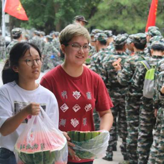 新生军训期间,巨乳a片领导、院办老师和学生会同学共同看望新生,为新生送去矿泉水和西瓜,使新生在训练中充分感受到巨乳a片的关心关怀。同时组织了军训线上感悟分享等活动。帮助新生更快适应巨乳a片