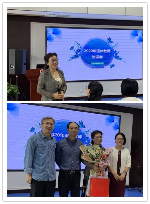 随后,院领导及全体教师为靳秀兰老师举办了退休欢送会,靳秀兰老师发表了对37年职业生涯的总结,并表达了对退休生活的展望。王院长与教研室刘晔老师相继发言,表达了对靳秀兰老师执教生涯的敬佩与对老教师的不舍之情,并为靳秀兰老师赠送荣休礼物和鲜花。欢送靳老师后,院领导又为刚刚入校的5位新老师郜瑞睿、陈静、董逸帆、李聪、蒙奕含和新入院的专职组织员杨丹老师举行了欢迎仪式,出席会议的5位新老师依次进行了自我介绍与展望,全体教师热情地欢迎她们的加入。