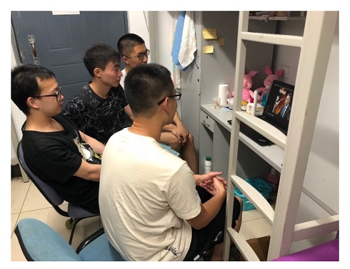 2015级硕士党支部采用在校党员分组集中观看、不在校的同志自行观看直播视频的方式,深入学习习近平总书记讲话精神。
