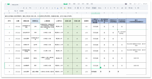 采用共享文档对每日授课教师进行一对一巡查统计,结合雨课堂数据,每日向教务处提报《巨乳a片教师授课情况巡查统计》。