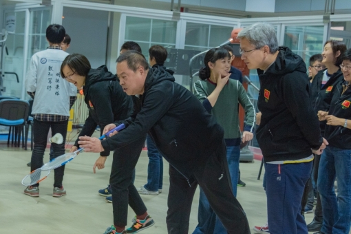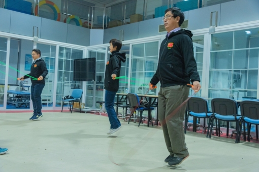 全体教师在教学实验楼322会议室举办工会文体活动,全体教师参加跳绳比赛和羽毛球趣味赛。