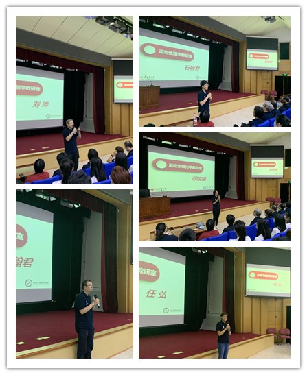 随后,五位教研室主任/书记分别介绍了教研室情况,同时为同学们送上寄语。运动解剖学教研室主任刘晔老师表示解剖学是研究人体的形态结构与运动之间的关系,它是运动人体科学的“地基”与“框架”,务必要把基础打牢。运动生理学教研室党支部书记石丽君老师表示运动生理学是研究人体功能的学科,主要研究在运动过程中机体的反应与适应,她建议同学们在未来四年中多学、多看、多体会、多经历。运动生物化学教研室主任书记邱俊强老师告诫同学们不仅要爱科学,也要爱运动,因为只有爱运动才能体会科学是如何在运动中起作用的。运动生物力学教研室主任李翰君老师幽默祝地福同学们“高数不要挂”,建议同学们要学会“同伴学习”,不要指望老师填鸭式的教学,要学会主动自学,与同学共同学习讨论,从而获得成长。体质与健康教研室主任书记任弘老师提醒同学们体育是实践性极强的学科,一定要注重实践,好好锻炼,同时做好长远的打算,建议同学们继续深造以便更好的就业。此外,任老师还希望同学们能作为健康的传播者,把学到的技能传授给身边的亲人朋友,为祖国的健康事业做出贡献。