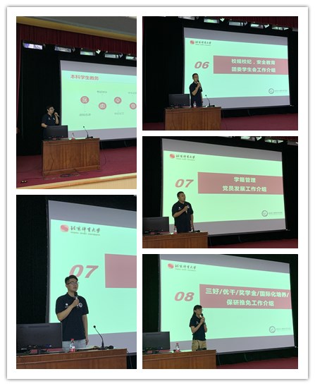 的各项校规校纪,告诫同学们务必遵守,以免影响自己的学业和未来发展,并对同学们进行了安全教育,包括防诈骗,校园安全,出行安全,疫情防控要求等。此外,娄老师还介绍了团委的相关工作,如团员发展、团支部建设、推优评选等。辅导员刘鸿瑞老师、学生党支部书记张鹏程分别介绍了学籍管理和党员发展的工作。最后,院长助理赵星老师重点介绍了同学们最为关心的保研推免、三好学生、优秀干部、奖学金、国际化培养等评优评奖的时间节点和评选办法,并做了总结发言,鼓励同学们好好学习,积极争取巨乳a片