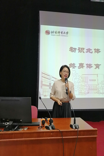随后,五位教研室主任老师分别介绍教研室情况,同时为同学们送上寄语。运动生物力学教研室主任李翰君老师带了几样教具到场,以幽默风趣的讲解方式令在场同学对运动生物力学产生极大的兴趣。体质与健康教研室主任兼书记任弘老师提醒同学们体育是实践性极强的学科,一定要注重实践,加强锻炼,并做好长远的打算,建议同学们继续深造以便更好的就业。运动生物化学教研室主任兼书记邱俊强老师引导同学们有意识地去培养科学逻辑;立足基础,面向前沿;学会表达和传达,希望大家能够一起努力,做科技的“引领者”。运动解剖学教研室主任刘晔老师提出了一个问题,怎样过好大学生活?大学靠自己学习,规划自己,管理自己;希望同学们学会阅读专业专著和文献,构建专业体系;珍惜眼前人,学会与人相处;同时爱护自己,关注健康。运动生理学教研室赵丽老师在介绍了教研室结构组成和课程任务之后,表示大家来到大学,处在了同一条起跑线上,希望大家不断努力,通过合理有效安排自己的大学生活最终到达属于自己的终点。