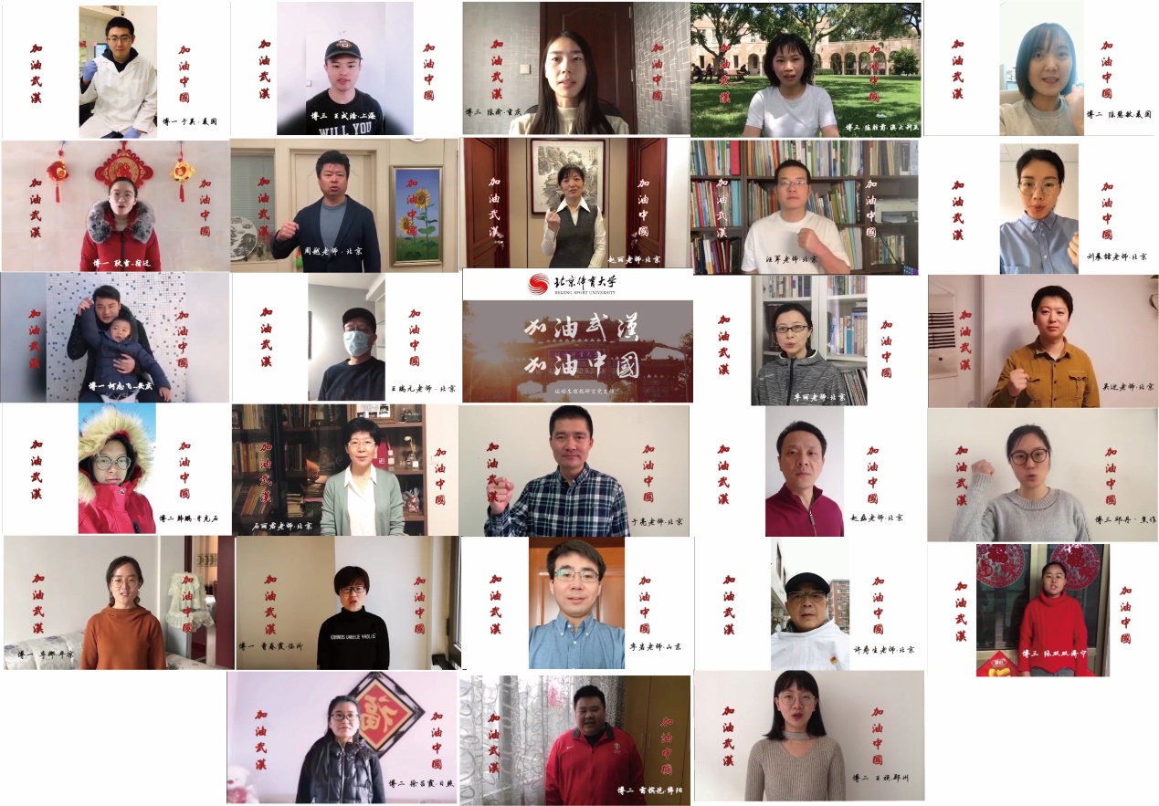 接着,石丽君老师放映了运动生理教研室全体师生录制的为武汉加油,为中国加油的视频。视频虽短,但寄托了身处世界各地的师生齐心与全国人民同心战疫,共克时艰的坚定决心。