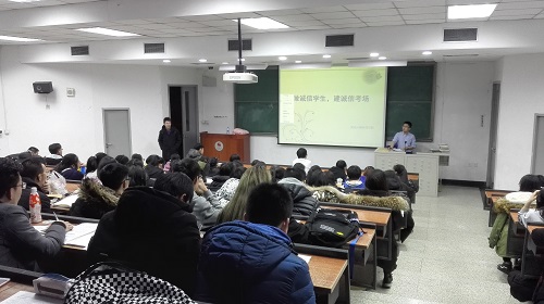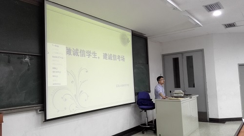 接着,万老师强调了期末考试的诚信问题,为同学们介绍和解读了考试违规的一系列处理办法,并提醒大家多多关注自己的学习成绩,还让同学们都签订了诚信考试的承诺书。最后万老师为大家进行答疑,对于同学提出的问题,一一耐心解答。