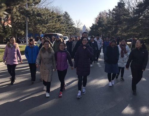活动的队伍迎着午后温暖的阳光,从教学实验楼出发开始长走,呼吸着户外新鲜空气,既锻炼了身体,又舒缓了压力。研究表明,健步走可以放松心情、舒筋通络、活血顺气、强身健体;同时还能够调节大脑皮层的活动功能,促进身体各种激素分泌,进而缓解压力,消除脑力疲劳,提高学习和工作效率,使人心情愉悦等。