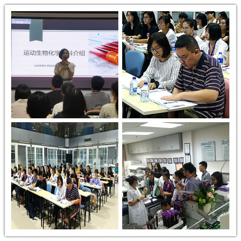 组织的形成过程,同时指出教研室科研业绩突出,承担多项国家重点研发项目,全体教师都是科研业务骨干,在社会服务方面表现突出。随后,邱俊强教授以“运动应激与适应”、“运动营养与运动表现”为主题,从能量代谢、能量平衡、运动应激与适应、运动营养与运动表现、训练监控等方面介绍了本领域研究热点问题,并引出运动生化专业发展的未来展望,她强调基础与前沿结合的重要性,希望大家在经典与创新之间大胆探索。运动生物化学发展的新方向是多学科交叉综合,她希望同学们把理论与实践相结合,充分利用好分子生物学工具,搭建起实验室研究与实践之间的桥梁。邱老师还耐心细致地解答了学生们提问,并对学生的一些思考做出点评。最后,学生们参观了运动生物化学相关实验室,并与实验室老师、研究生等进行了深入的交流研讨。