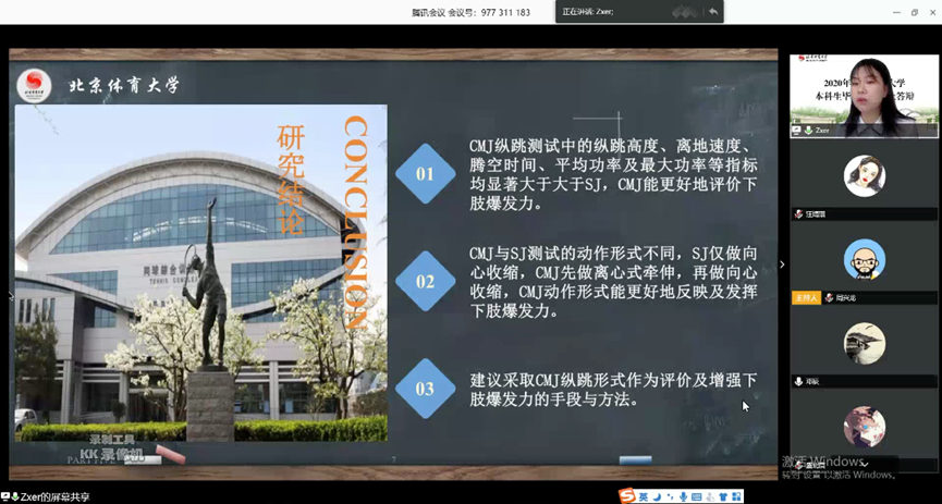 关于疫情防控期间扎实做好2020年本科毕业论文工作的要求,运动生物力学教研室认真部署远程视频答辩实施方案,排除各方面障碍,确保线上毕业论文答辩工作稳步进行。并于4月29日顺利开展2020届毕业生毕业论文线上答辩。