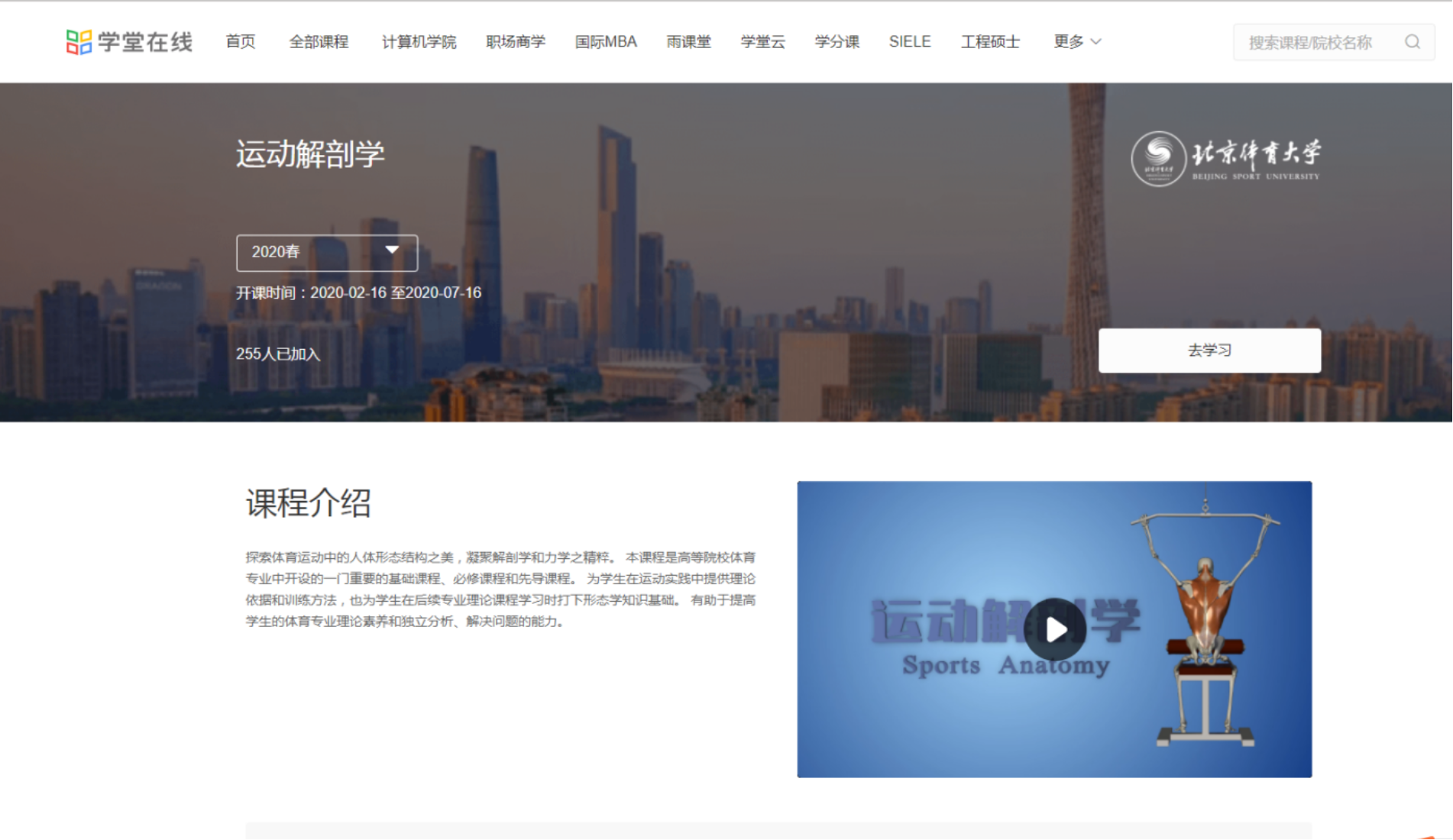 《运动解剖学》课程登陆“学堂在线”平台,助力“抗疫不停学”