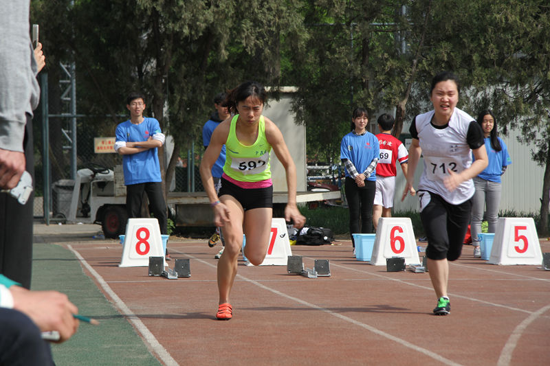 在20日上午的女子100米小组赛中,592号杨蕾以12秒88的成绩取得小组第一打破女子丙组100米校记录,毫无悬念进入决赛。晚上的决赛中,她又创下12秒85的新纪录荣获决赛冠军。赛后我们对她进行了专访。首先,当被问及对比赛和打破纪录的感想时,她表示自己在二月份已经开始做准备,目标是跑到13秒以内,因此对这个成绩非常满意。她尤其提到了在北体比赛气氛很好,大家支持和鼓励的呼喊让她深受感动。其次,作为一名学科生,她认为体育运动对我们的专业非常重要,因为只有真正运动过、进行一些正规的训练,才能真正理解并灵活运用所学的专业知识。她拿自己举例,因为受过训练,她可以更深刻地理解到各位老师上课教授的内容。对于普通人来说,体育运动可以帮助我们养成锻炼身体的习惯,只是需要进行专业的指导,防止受伤,量力而为。最后,她还和大家分享了自己的运动心得:我觉得自己岁数也不小了,还可以回到这个运动场上来,而且成绩也不差,真的很享受这个过程,很感动,感恩我还有这个机会。还有,我觉得运动真的可以让人看起来比较年轻哦,大家都动起来吧!