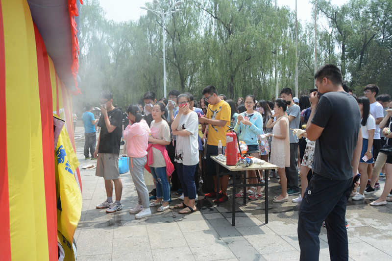 2014、2015级全体本科生在综合馆南广场进行了消防综合演习。本次演习由辅导员王鹏老师带队,旨在增强学生消防安全意识,提高消防安全和学生紧急逃生能力。